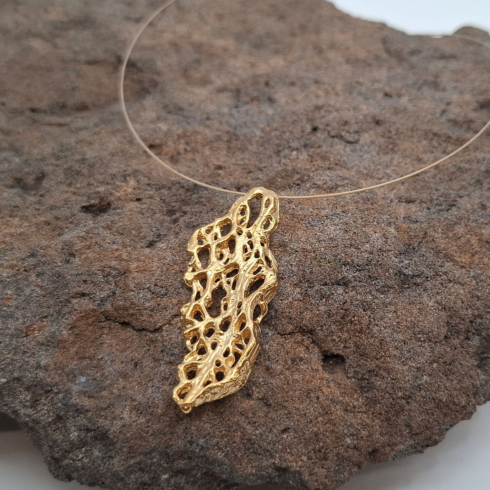 - Hand-sculpted beads in matte glass processing, combined with 24-karat gold leaves. 24K gold plated cables, Gold-filled finishings.